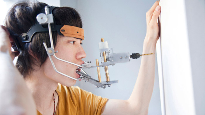 Designér používá svá ústa jako stroj i nástroj tvorby
