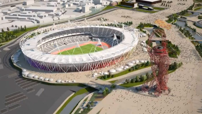 Prolétněte se nad věží ArcelorMittal Orbit na animaci