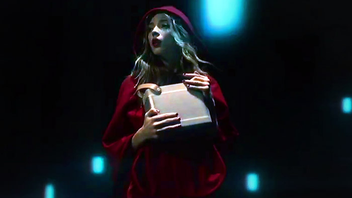 Karkulka přináší místo košíku reproduktor BeoLit 12