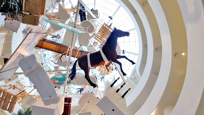 Maurizio Cattelan zavěsil své umění v Guggenheimu