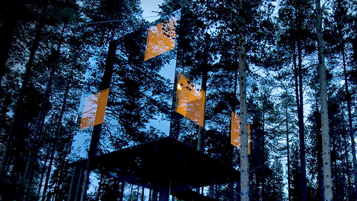 MirrorCube je obytná kostka na stromě ze zrcadel
