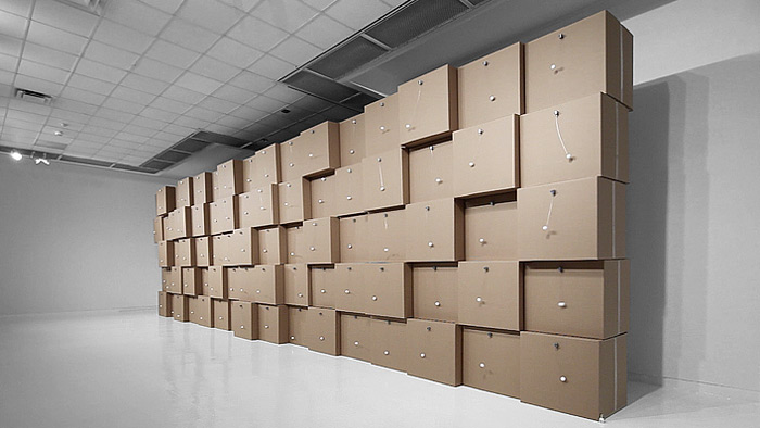 Zimoun vystavuje 80 krabic s bubnujícími kuličkami