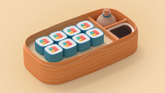 Animátor vytvořil krátké video ukazující postup při přípravě sushi