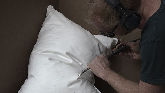 Norský sochař Fagerås vytváří z kvádru mramoru bílé polštáře