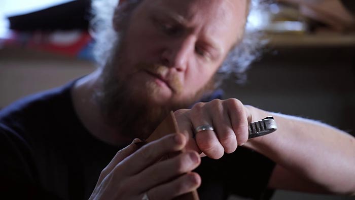 Jakub Jarolím ukazuje českou ruční výrobu kožených tašek