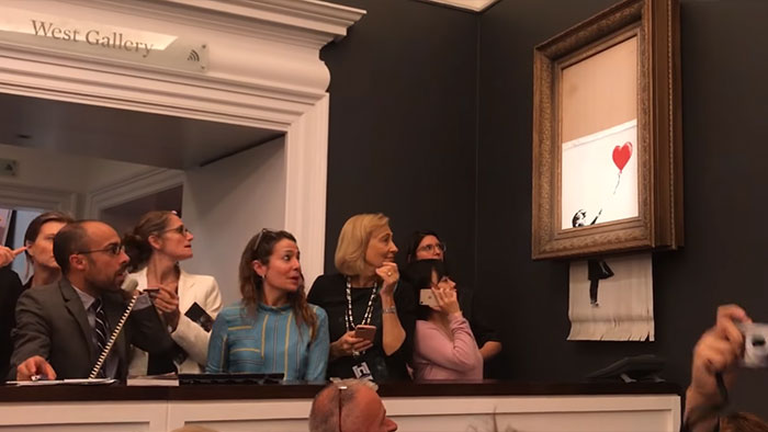 Banksy dal do aukce svůj slavný obraz co se po vydražení sám zničil