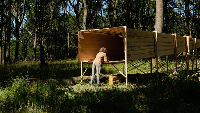 Šedesát studentů postavilo v lesích šest struktur včetně mostu a reproduktoru
