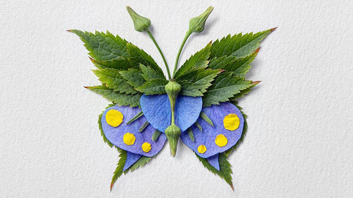 Raku Inoue vytváří realistické obrazy motýlů a brouků jen z květů a listů