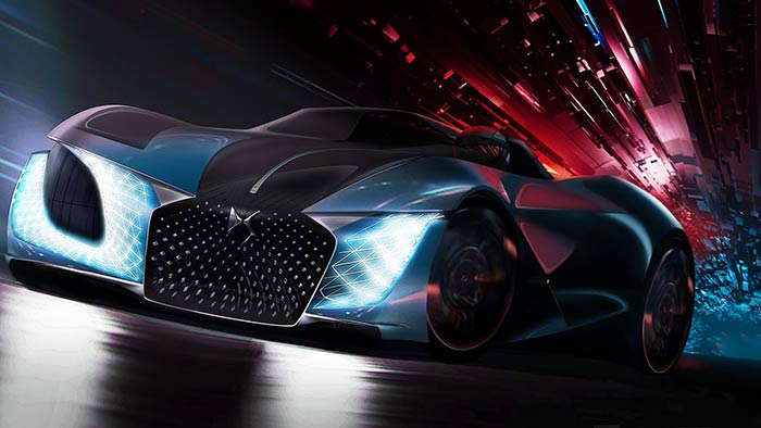 DS X E-Tense je vize elektrického sportovního vozu z roku 2035