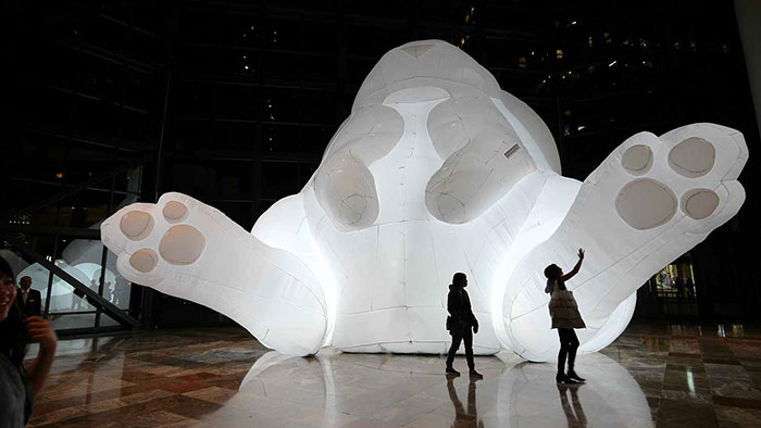 Amanda Parer postavila na Potsdamer Platz v Berlíně obří nafukovací zajíce