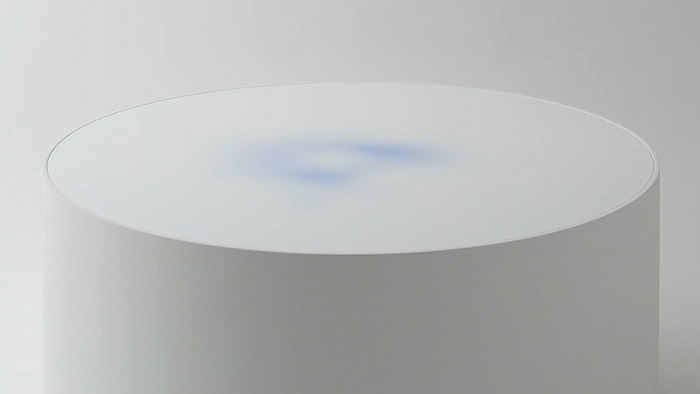 Japonský stolek Blur má desku ozdobenou měnící se rozpitou modrou barvou
