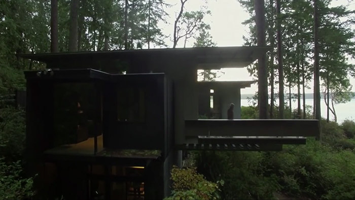 Architekt Jim Olson ukazuje svůj dřevěný dům v lesích ve Washingtonu