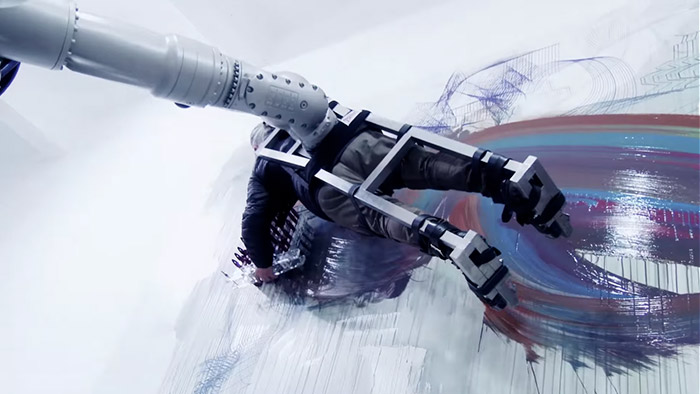 Dragan Ilic maluje obrazy připevněný k robotu RoboAction A1 D1