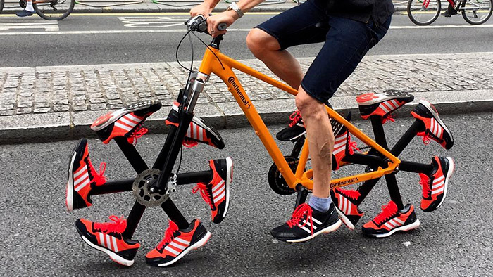 Na festivalu cyklistů v Londýně se ukázalo kolo z bot Shoe Bike