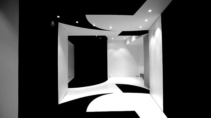 La Nouvelle Heloïse má v interiéru plovoucí černobílé stěny