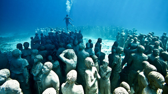 Jason deCaires Taylor vystavuje své sochy lidí pod vodou