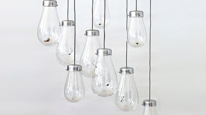 Curiosity Cloud je instalace skleněných baněk s hmyzem