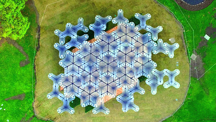 MODU vytvořili v Tel Avivu pavilon se střechou z 30 000 koulí