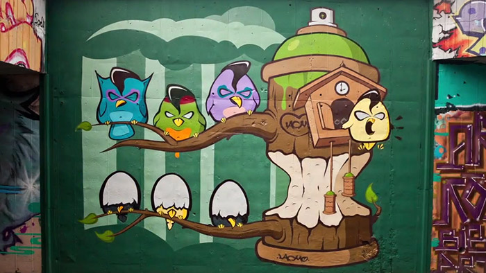 Lacmo v Ostravě vytvořil pohyblivé graffiti Painting Birds