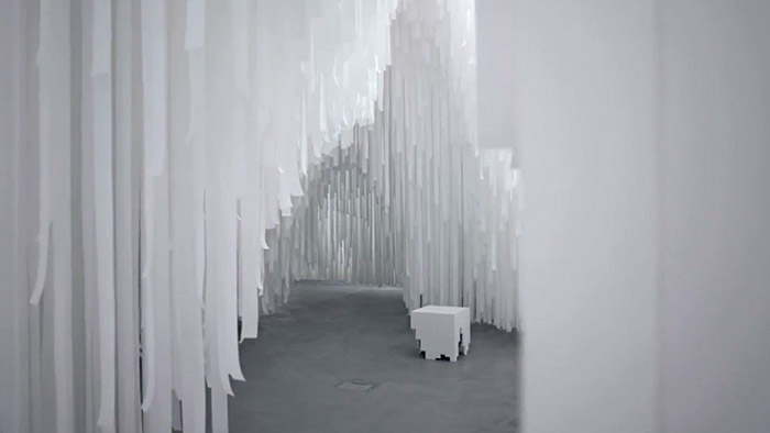 Snarkitecture vytvořili pro COS instalaci z bílých pruhů látek