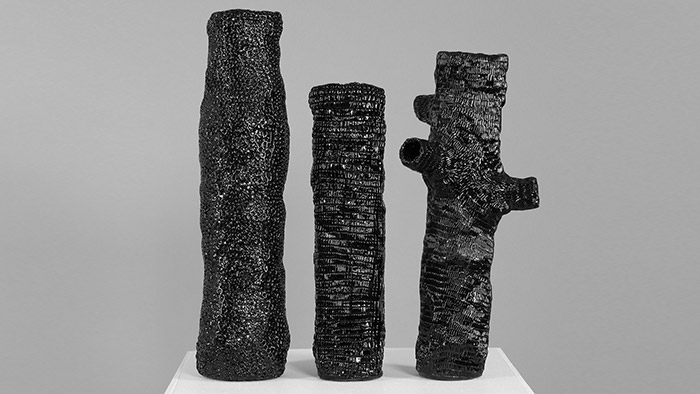 Marlene Huissoud vytváří černé vázy z včelího propolisu
