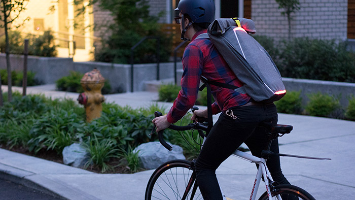 BrakePack je batoh s ukazateli pro bezpečnější jízdu na kole