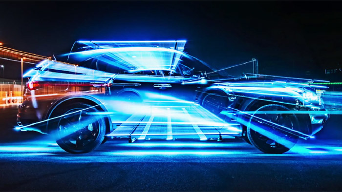 Vůz Infiniti QX70S maloval na okruhu světlem do fotografií
