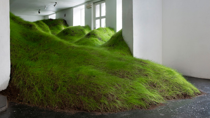 Norský umělec zaplnil galerii kopci pokrytými živou trávou