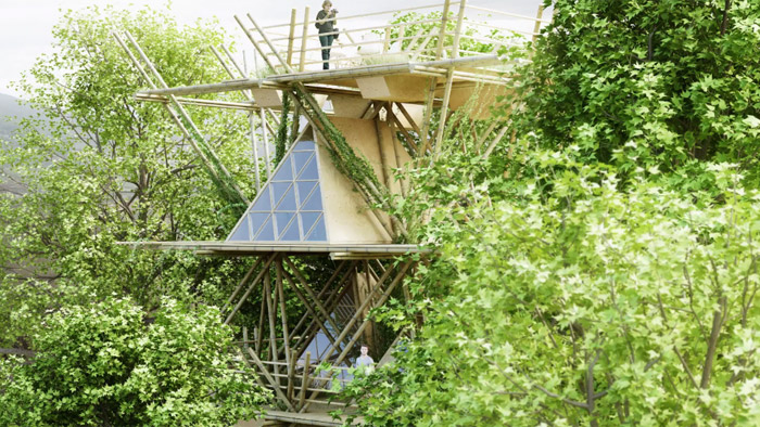 Penda navrhla několikapatrový dům postavený jen z bambusu