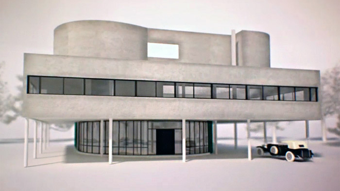 Animace ukazuje moderní prvky ve Villa Savoye od Le Corbusiera