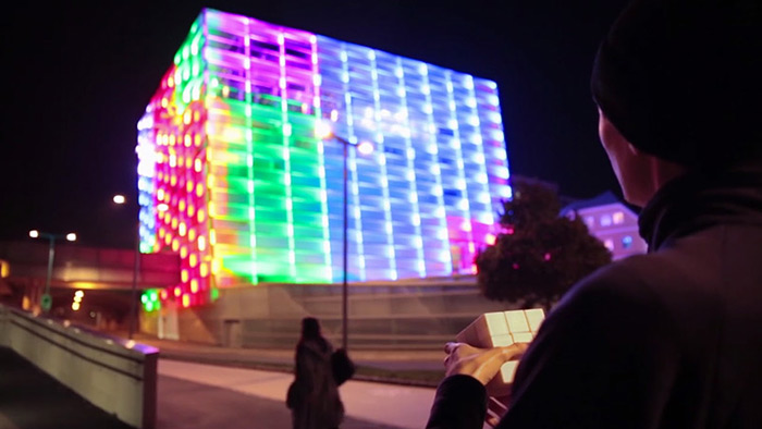 Rubikova kostka ovládá světla na fasádě budovy v Linci