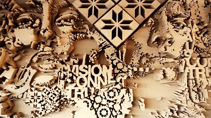 Vhils pokryl obří stěnu obrazcem Contraste z korku