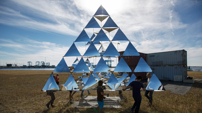 Tomás Saraceno otestoval létající stavbu Solar Bell