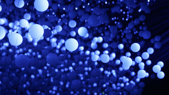 Fluidic je multimediální instalace složená z 12 000 míčků