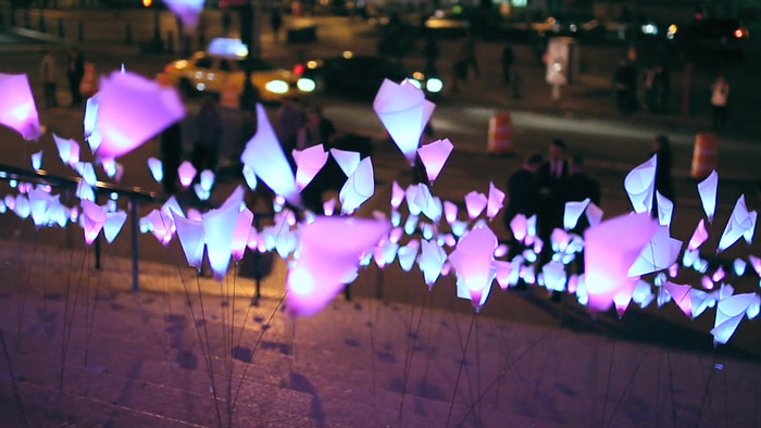 Soffio je světelná instalace jedné LED diody tvořící duhu