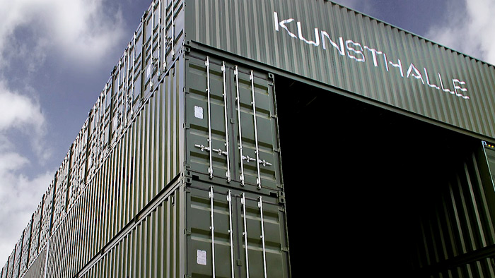 Platoon Kunsthalle se stavělo z dopravních kontejnerů