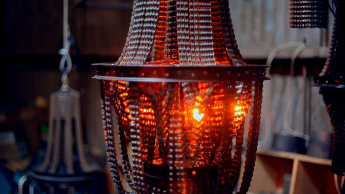 Američanka vyrábí lustry z řetězů a starých jízdních kol