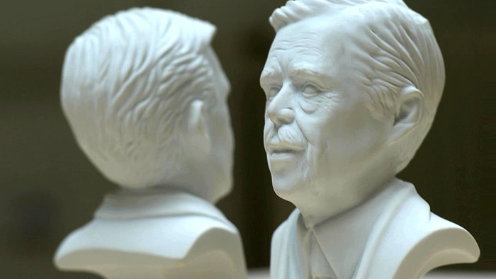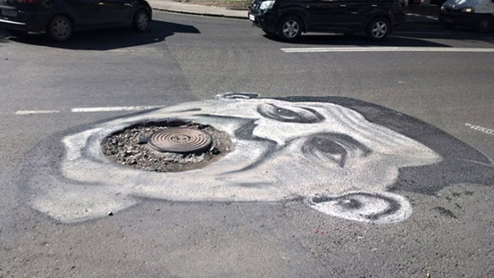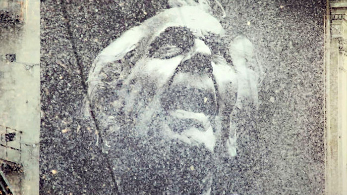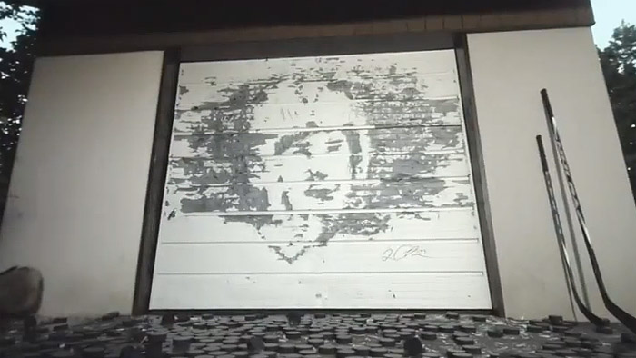 Hokejista namaloval portrét na garáž pomocí 800 puků