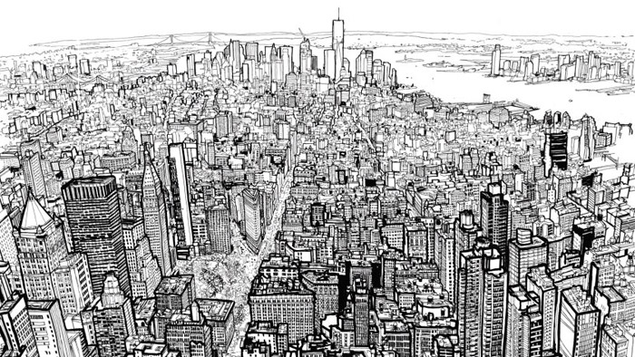 Patrick Vale nakreslil pár fixami pohled na Manhattan